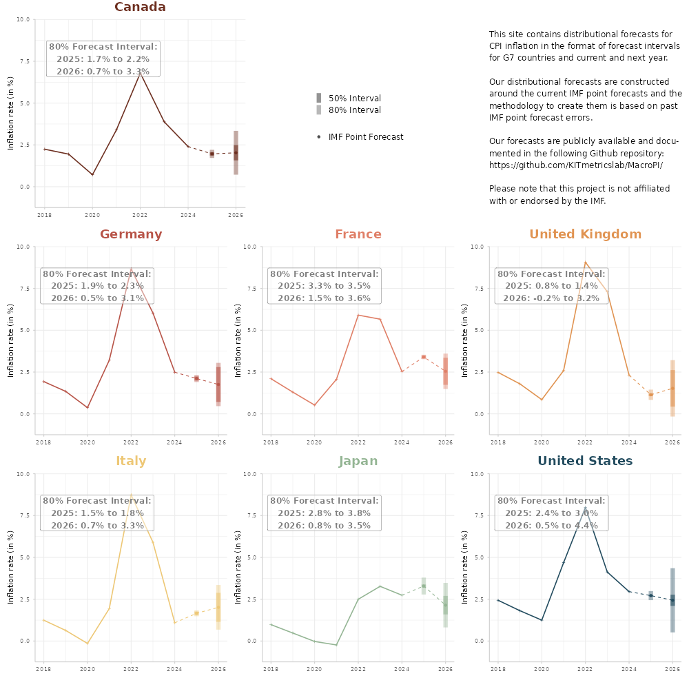 Die Forschenden haben eine Methode entwickelt, die Prognoseintervalle für Wachstum und Inflation der führenden Industrienationen erstellt. Damit können sie Aussagen wie „Mit einer Wahrscheinlichkeit von 80 Prozent wird die Inflation in Deutschland im Jahr 2026 zwischen 0,5 Prozent und 3 Prozent liegen“ treffen. Grundlage sind Punktprognosen des Internationalen Währungsfonds und eine Analyse früherer Prognosefehler.